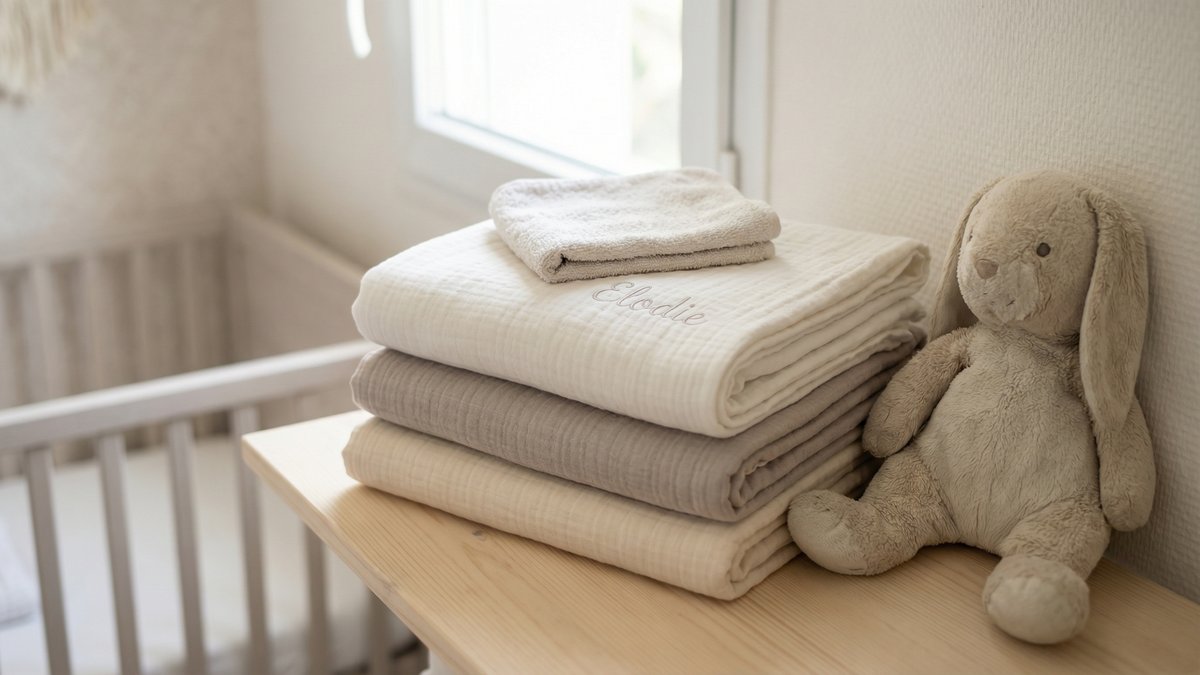 En plein hiver, quand on prépare des cadeaux de naissance pour l'année qui démarre, on peut choisir d'empiler les clichés ou de faire l'effort d'un geste plus juste. Un body sobre avec une impression fine, une couverture brodée avec un motif discret, un doudou légèrement personnalisé : ce sont ces objets‑là que les familles garderont vraiment.